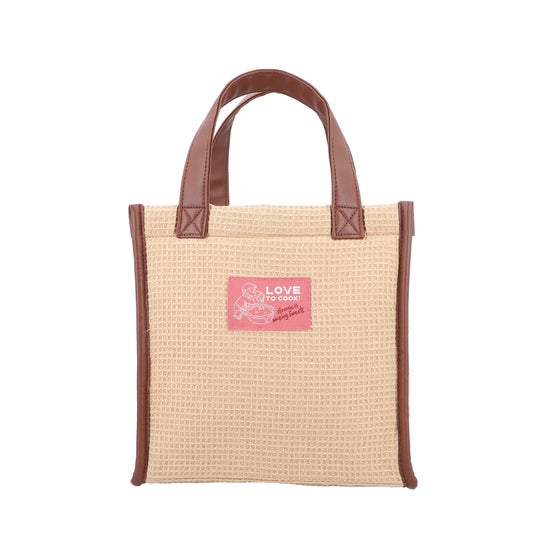 Curious George Kitchenにてテイクアウトのみ販売している「ジョージのお顔のワッフル」をイメージした、柔らかいワッフル生地が特徴のA5サイズのノートが入るサイズのミニトートバッグです。カジュアルな印象のワッフル生地に、合皮の持ち手とパイピングの異素材を合わせることで引き締まったデザインに仕上げました。幅の広いマチ付きで、ちょっとしたお出かけにもおすすめのサイズ感です。