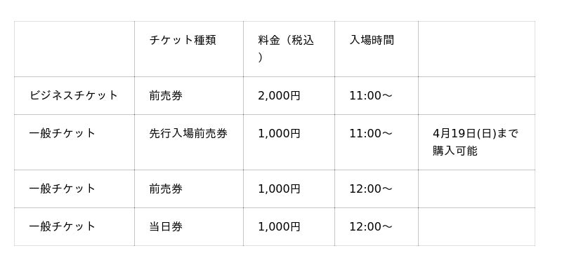 また、本日より入場チケットの販売を開始しました。入場チケットはデジタルチケット販売サイト「PassMarket」にてご購入いただけます。11時から入場可能な「先行入場前売券」を4月19日(日)まで販売します。今回も18歳以下の方の入場は無料で、小学生以下の場合は保護者の同伴が必要です。