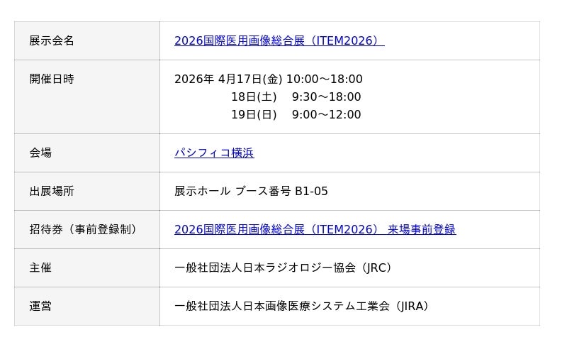 ▶ 「2026国際医用画像総合展(ITEM2026)」のご案内はこちら