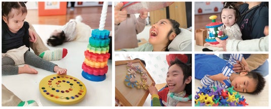 体を動かすことが難しい子どもたちも楽しめるよう、音・鮮やかな色合い・手触りなど五感に響くおもちゃを厳選。今回のセットは世界から選り抜いた約40点を2箱にまとめてお届けするもので、「どんなおもちゃが合うかわからないが、これだけあれば何かお気に入りが見つかる」と保護者からの評価も高い内容です。