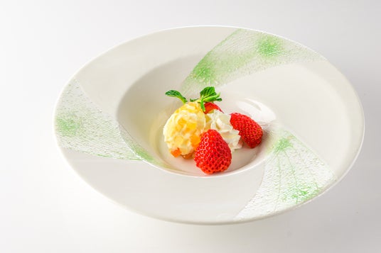 ニセコ産チーズのやさしい甘味と瑞々しい春苺の爽やかな味わいが広がります。