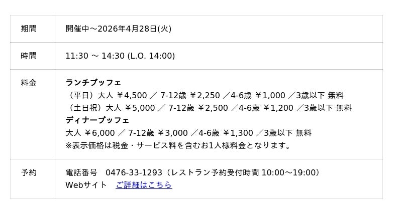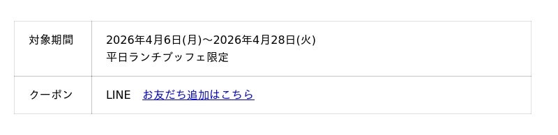 <クーポン対象期間:2026年4月6日(月)~4月28日(火) 平日ランチブッフェ限定>