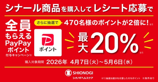 ヘルスケア価値の提供を通じて社会に貢献するシオノギヘルスケア株式会社(本社:大阪府大阪市、代表取締役社長:中川 ゆう子、以下「シオノギヘルスケア」)は、ビタミンC医薬品ブランド「シナール」のPayPayポイント付与キャンペーンを2026年4月 7 日~5月6日にて開催します。