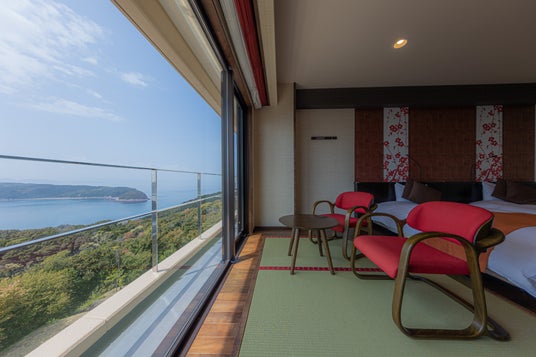 紀淡海峡に浮かぶ島々を一望する絶景のホテルです。客室は全室オーシャンビュー、特に夕景の美しさは別格です。また、春の桜鯛、夏のハモ、秋の伊勢海老、冬のクエ等、四季を通して海の幸も楽しめます。自慢の露天風呂は、紀淡海峡と湯面が一体化する趣向で人気があります。敷地内の深山砲台跡をはじめ、アニメファンに話題の友ヶ島もすぐそこにあり、周辺フィールドも見所沢山です。所在地 :〒640-0102 和歌山県和歌山市深山483