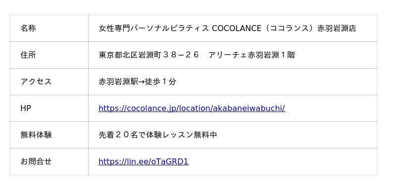 【赤羽岩淵駅 徒歩1分】女性専門パーソナルピラティス COCOLANCE(ココランス)赤羽岩淵店が2026年6月1日にオープン