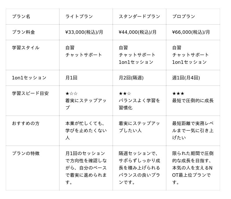 - パーソナライズカリキュラム開始前のヒアリングで目的・現状・キャリアプランを整理し、専用プランを設計