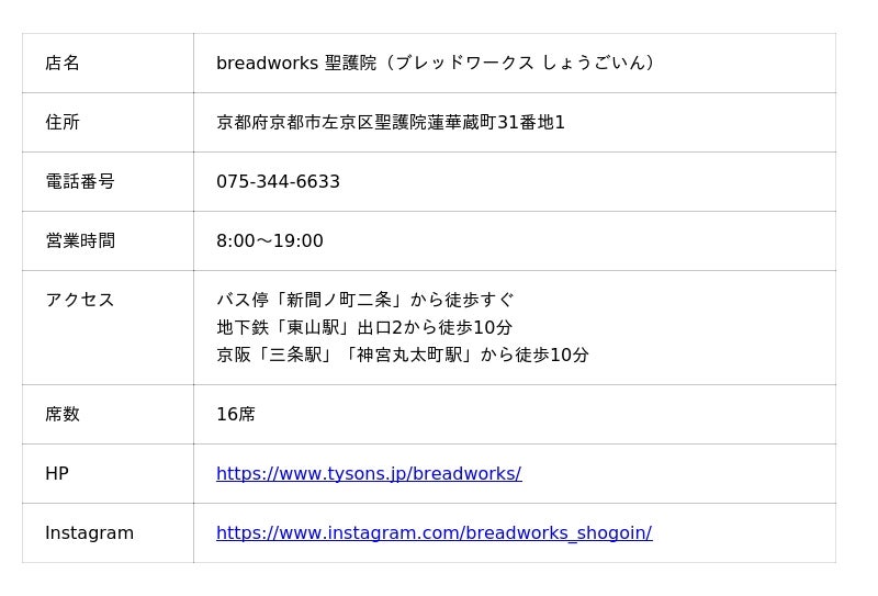 株式会社タイソンズアンドカンパニー(本社:東京都品川区、代表取締役社長:寺田心平)は、東京・天王洲、表参道で展開するベーカリー「breadworks(ブレッドワークス)」を、2026年4月9日(木)、京都・聖護院にオープンいたします。