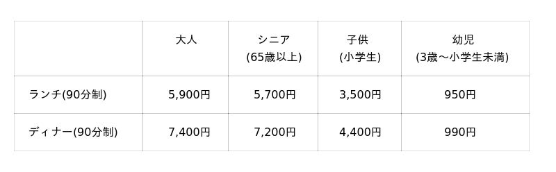 詳細は以下の通りです。(価格には税金・サービス料が含まれております。)