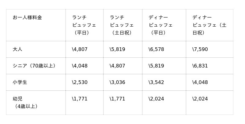※表記料金は、すべて税金・サービス料を含みます。