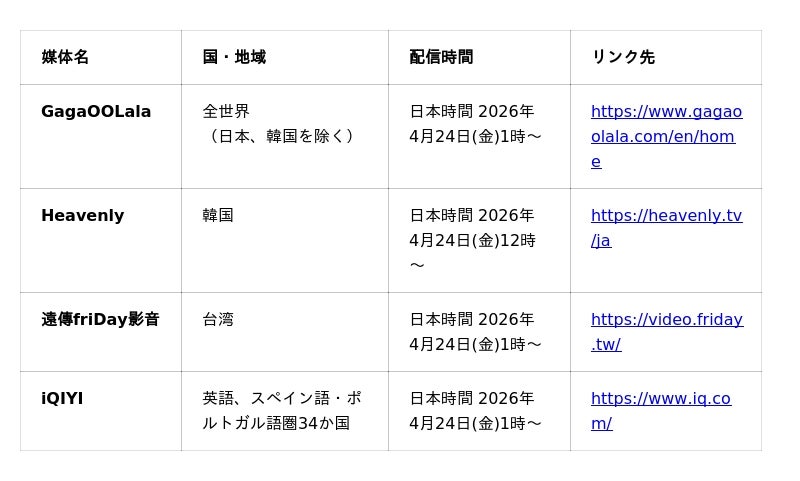 GagaOOLala、Heavenly、遠傳friDay影音、iQIYIにて全世界同日配信