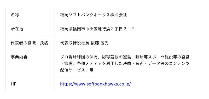 福岡ソフトバンクホークス株式会社は、日本のプロ野球の球団の一つで、パシフィック・リーグに所属。球団スローガン「めざせ世界一!」のもと、プロ野球文化の継承と野球球技の振興を行い、野球にとどまらず、人々の感動、勇気、夢につながる世界一のエンタテインメントを実現する使命と責任を負っています。