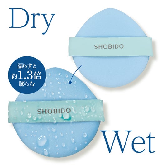 パフなのに水で膨らむ!しずく型で細かい部分もしっかりカバー。粧美堂より、光沢肌メイクを演出する※「Wet&Dryパフ」が新登場