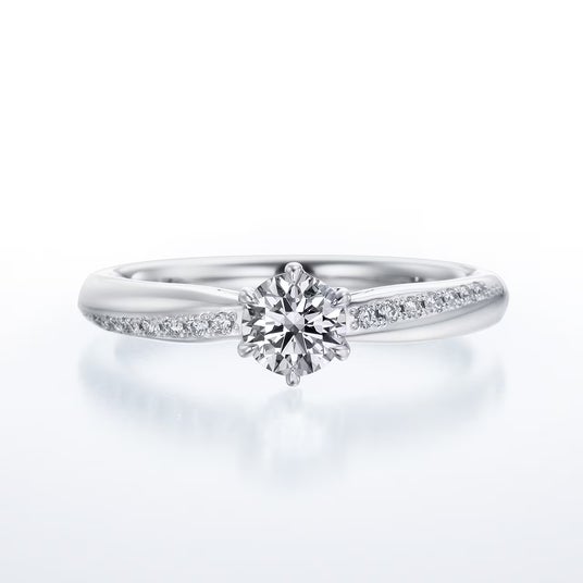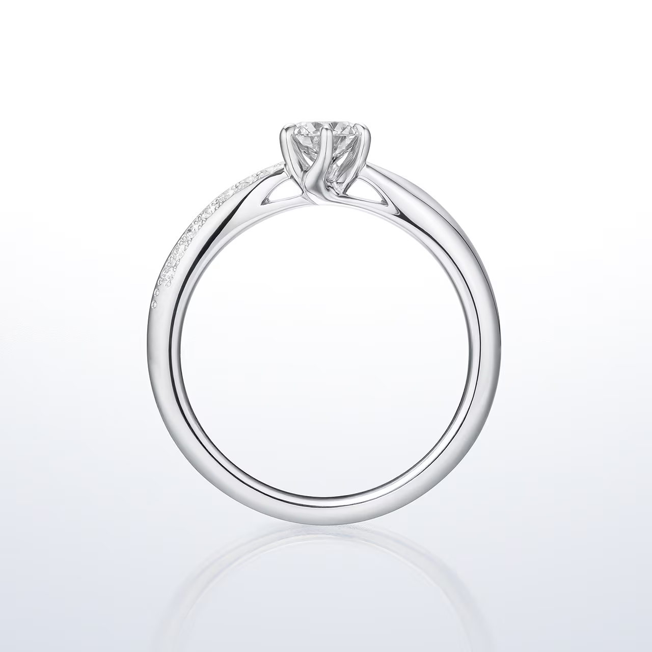 ふたりの出会いによって生まれた無限の輝きが永遠となり、未来へと果てしなく続いていく様子を表現しています。中心に向かって細くなるアームはセンターダイヤモンドを引き立て、ストレートでありながら緩やかなウェーブを描く有機的なメレダイヤモンドのラインは上品かつ自然な印象を与えます。