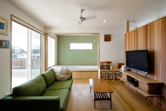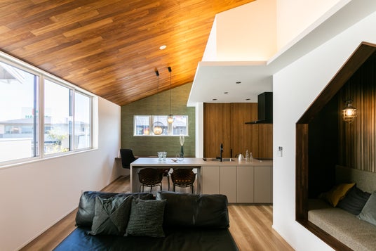 4. どこにいても家族のつながりを感じられる空間 キッチンに立ちながら、リビングでくつろぐ家族や、お庭で遊ぶお子様、タタミコーナーでお昼寝する様子まで、自然に目が届く間取りを採用しました。家族の気配をいつも感じられる、心のつながりを大切にした設計を目指しています。