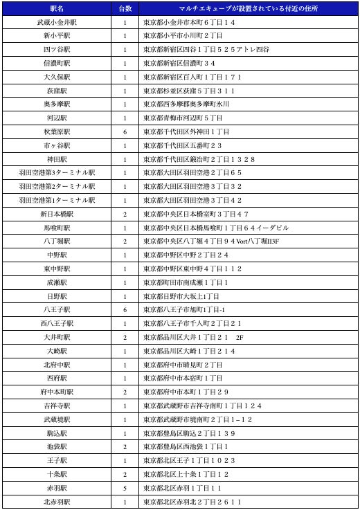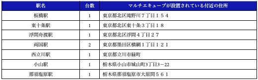 2026年3月末時点で、東京駅や新宿駅など290駅に計912台を設置しています。2026年度内に首都圏駅構内を中心に、約1,000台30,000口を展開予定です。