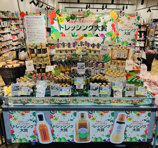今年で6回目を迎える「ドレッシング大賞」は、全国の北野エースのスタッフが今年お客様におすすめしたいドレッシングに投票し、選ばれたドレッシングを部門別に紹介するランキング企画です。北野エースでは、200種類以上のドレッシング(※1)を販売しており、4月21日(火)~5月20日(水)の期間にドレッシング大賞入賞商品を全国の店舗で展開します。投票総数725票の中から2026年「北野エーススタッフが選ぶ 第6回ドレッシング大賞」で【濃厚コク旨部門】、【あっさりコク旨部門】、そして弊社バイヤーのイチ推し商品から選ばれた【バイヤー発掘部門】(※2)でそれぞれご紹介します。