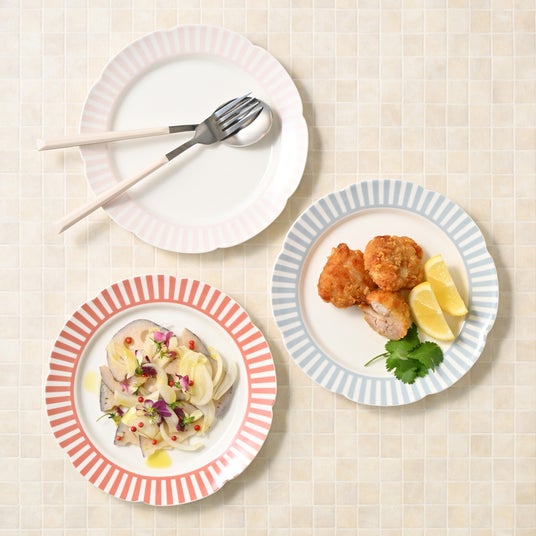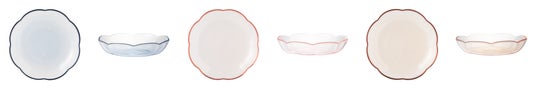 スカラップ状のリムがアクセントとなり、食卓に花が咲いたような華やかな印象を添えます。