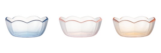底面から縁へとやさしく色が移ろう、グラデーションが美しいガラス食器です。