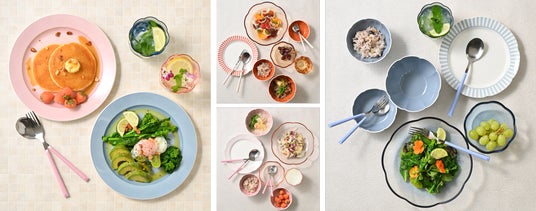 いつものお皿を変えるだけで、テーブルを可愛く彩りながら自然と食事量を意識しやすくなることを目指した食器シリーズです。美容や健康に心地よく向き合う「美活」への関心が高まる近年。