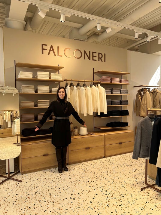 FALCONERI (ファルコネ-リ)は、高品質、イタリア二ティへのこだわり、そして手が届く価格帯でメンズ/レディースアイテムを展開しています。カシミヤなど最上級の天然素材を使用し、クラフツマンシップによる伝統と、モダンで洗練されたデザインの融合、そして細部へのこだわりが際立つアイテムを提供しています。製造工程の大部分は、イタリア・トレントの自社工場で行われ、アイコンであるカシミヤ糸「ウルトラファイン」は、シンプルなデザインと豊富なカラーバリエーションが揃っています。2009年に旧カルツェドニアグループ(現在のオニヴァース)の傘下に入って以降イタリアを含む世界29カ国に201店舗を構え、日本では銀座、青山、新宿高島屋、玉川高島屋、心斎橋、大丸福岡天神にて展開しています。(2026/04)