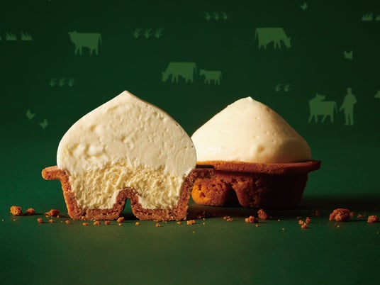 美味しさの決め手は、北海道日高町にある自社の放牧酪農場で育てた放牧牛乳と平飼い卵を使用した生チーズスフレと、生チーズムース・ザクザククッキーの食感の組み合わせ。ムース部分は、たっぷりと空気を含ませることで、口に入れた瞬間にふわっととろけるような食感に。まさに驚きの美味しさ。