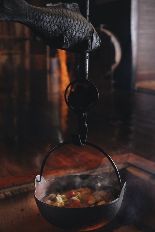 昔ながらの囲炉裏を囲むあたたかな空間の中で、中条地区の郷土料理「おぶっこ」や名物「灰焼きおやき」など、里山ならではの食と文化を体験していただけます。