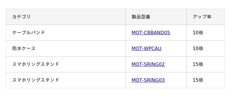 【MOTTERU】4/14(火) 20:00スタート「楽天お買い物マラソン」にて新商品・人気商品を最大約50%OFFで販売