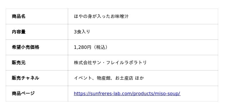 ● 本商品は、サプリメント形状ではなく、日本人にとってなじみ深い味噌汁という食品形態で、ホヤ由来プラズマローゲンの素材価値をより身近に届けることを目指した商品です。新鮮なほやの身と海藻がたっぷり入った具だくさんの味噌汁で、一口で磯の香りとほやの旨みが広がる設計としました。