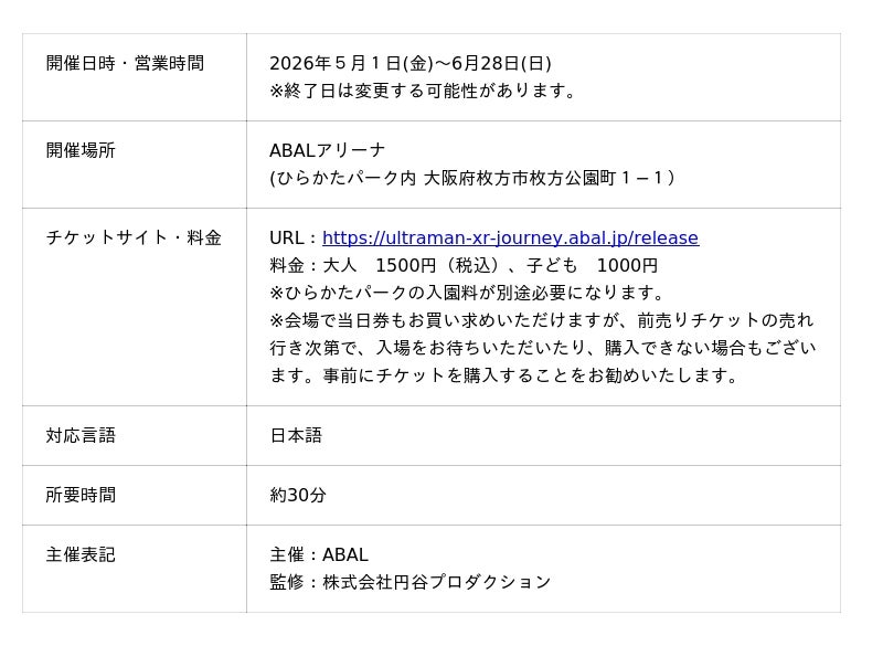公式サイト:https://ultraman-xr-journey.abal.jp/release