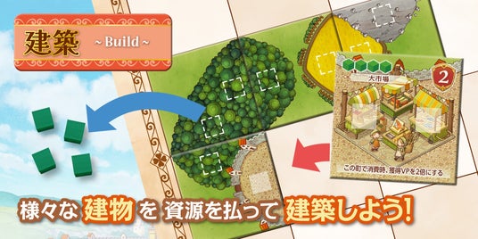「建築」で必要な資源を払い、色々な建物を建てることができます。相棒のブラウニーたちが運営する建物はそれぞれ効果を持っており、開拓地経営に強い影響をもたらします。
