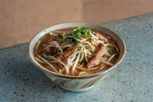 ・牛肉:大豆ミートを牛肉にみたてて、ニンニク醤油に漬け込み。完全植物性【ヴィーガン】のスープと具材の一杯が完成しました。