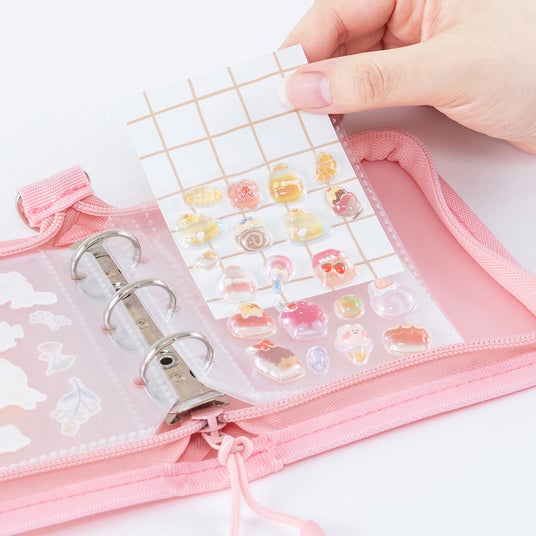 - シールのコレクションに便利なファスナー付きのシールバインダー- 「シールを貼る・台紙ごと収納する」の2つの使い方ができ、「シールポケット」10枚、 フレークシールなどの小物入れになる「ファスナーポケット」が1枚付属