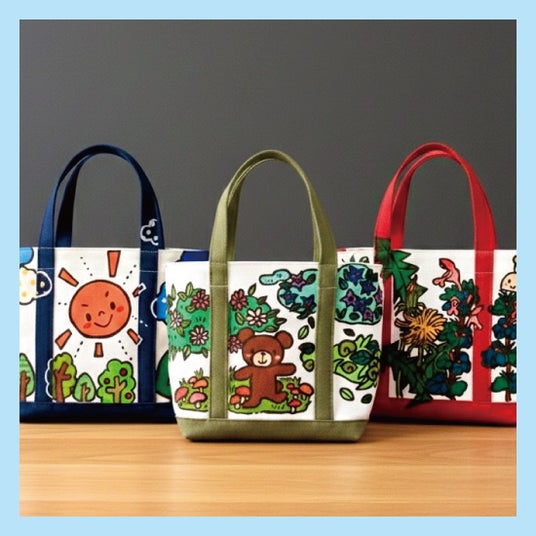 原画の質感や鮮やかな色彩をまとう、世界に一つの手描きトートバッグ。 持ち運べるアートでお出かけも楽しくなるかも。