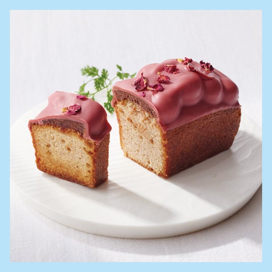 ラズベリーの甘酸っぱい風味とバラの香りがスウィーツ好きの心をくすぐるパウンドケーキ。