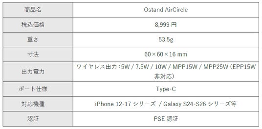 「Ostand AirCircle」は、充電中の熱暴走を防ぐ冷却システムと、利便性を追求した回転スタンドを融合させた多機能ワイヤレス充電器です。