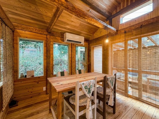 元牛舎を改装した全木造りの独立した離れに、食事スペースと休憩スペースを備えた2つの個室空間をご用意しました。ランチは1日2組限定。あなただけの静寂な空間で、木の香りと漏れてくる光に包まれながらお過ごしいただけます。人混みを気にすることなく、完全なプライベートタイムをお約束します。