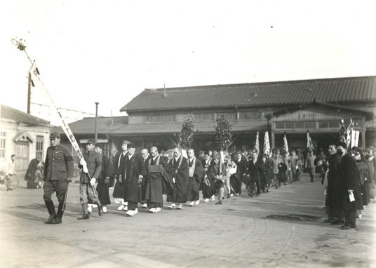 1 公葬行列「明石駅前広場出発」昭和19年 個人蔵