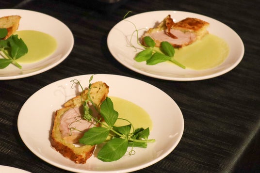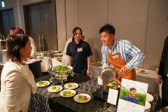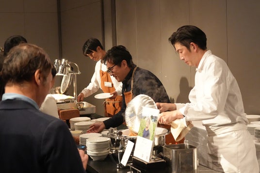会場となった5階「THE GRACE」には、キャベツ、アスパラガス、トマトなど、東三河の肥沃な大地が育んだ旬の食材が並び、今里総料理長がその魅力を最大限に引き出した洋中折衷の料理へと昇華。約130名の来場者が、目と舌で東三河の豊かさを堪能しました。