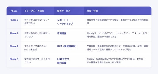 Expertは「クライアントが今どこにいるか」に応じた4フェーズの支援メニューを提供します。途中のフェーズからのご支援も可能です。