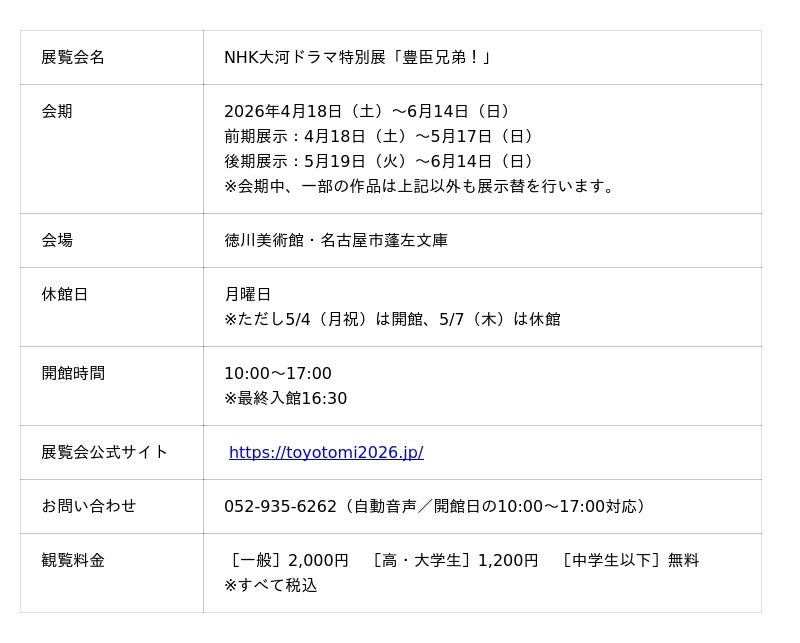 前期と後期で展示内容も変わるので、一度だけでなく、二度三度と見てもらうことで、大河ドラマ「豊臣兄弟!」の奥行きを感じながら楽しんでもらえるのではないかなと思います。ぜひ皆さんにお越しいただきたいです。展覧会開催概要