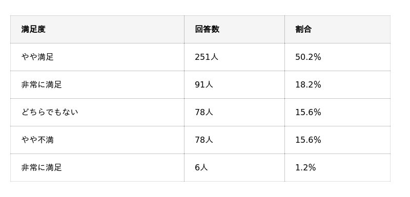 全体では満足層が多数を占めるものの、「やや不満」15.6%と「非常に不満」1.2%で合計16.8%が速度に不満を抱えています。500人中84人が速度に不満を感じている計算です。