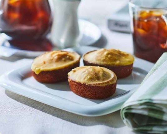 キャラメルを練り込んだコク深い生地に、アプリコットの甘酸っぱいジャムをしのばせたフィナンシェ。南国フルーツのアイシングで、フルーティーで華やかな味わいに。