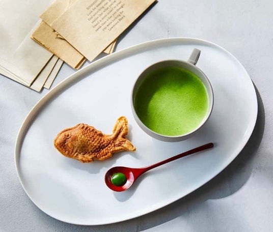 「麩嘉」鯛焼き麩×「一保堂茶舖」抹茶セット(1人前)1,870円<各日販売予定数30>※ドリンクは玉露・煎茶・番茶からもお選びいただけます。
