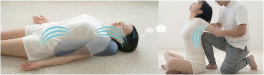 こだわりの弾力性と肩甲骨の間にフィットする形状、そしてエアーによるふくらみの動きにより、背中を縦方向に伸ばしながら、横方向に胸を心地よく開きます。人の手で支えられながらストレッチしてもらっている感覚を目指しました。