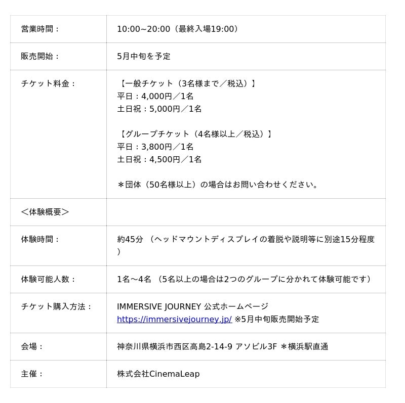 ■「IMMERSIVE JOURNEY 横浜」 チケット情報