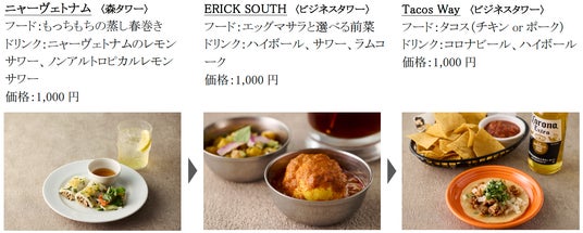 フード・ドリンクが付いて1,000円というお得なセットで気軽に海外旅行気分を味わえるプランをご紹介。虎ノ門ヒルズには、本格的な海外の味を堪能できる名店が多数集結しています。その中でも、今年3月にオープンし、イベント初参加となる「ニャーヴェトナム 」、カレーやミールス、ビリヤニを始めとするスパイスをふんだんに使った南インド伝統料理が人気の「ERICK SOUTH」、アメリカL.A.で大人気の本格的なタコスを味わえる「Tacos Way」を巡れば海外旅行気分を味わえること間違いなし。各地のグルメやビールを食し、虎ノ門ヒルズで"世界の美食巡り"を楽しんでみてはいかがでしょうか。
