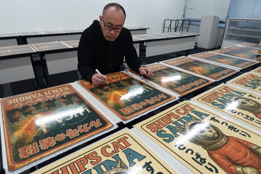 絵柄イメージは、旅をしながら福を運ぶ《SHIP'S CAT》シリーズより、ダイナミックかつユニークな作品展開で話題となった「BIG CAT BANG」「SHIP'S CAT (Speeder)」「LUCA THE LANDING」「SHIP'S CAT SAUNA」の4種類。ヤノベ氏の直筆サインとエディションナンバーが入ったA2サイズのエディション版と、A6サイズのミニチュア版をご用意。いずれも、限定枚数で、2026年4月以降にヤノベ氏が出展する展覧会やアートイベント会場で販売予定です。