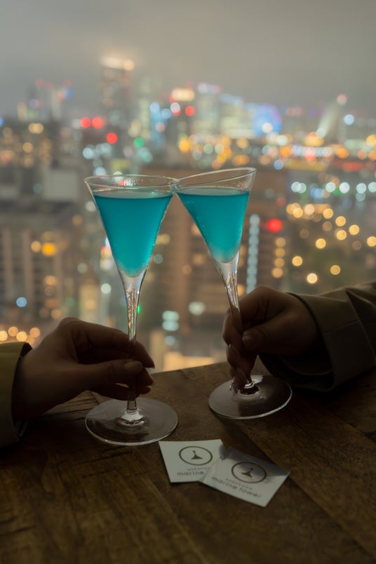 夜になると水町通り側1階に灯りがともり、ノスタルジーな雰囲気と共に特別なお酒を楽しむことのできるBar Noble MARINE TOWERより『 65周年オリジナルカクテル 』が登場いたします♪