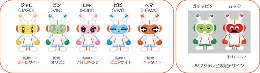 火星の鉱物を由来に誕生した5つの火星キャラクター!そしてフジテレビ限定でガチャピンとムックも火星衣裳で仲間入り!VR火星旅行内でもオリジナルキャラクターとガチャピン・ムックに出会うことができるかもしれません。ぜひお楽しみに!
