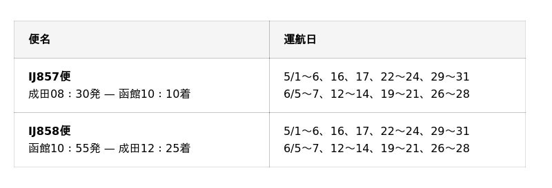 【成田-函館】(新規就航)